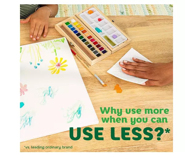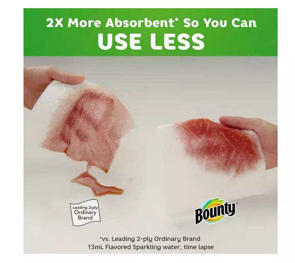 Spilled your drink? Quick! The Quicker Picker Upper. Be ready to tackle messes and spills with Bounty Paper Towels! Each sheet is 2x more absorbent, so you can use less and pick up spills and messes quicker than the leading ordinary brand. That’s why Bounty is the Quicker Picker Upper! Bounty Paper Towels are available in two sheet sizes, Full Sheet and Select-A-Size, so you can choose which option works best for you. Bounty Select-A-Size towels are versatile, so you can choose your sheet size depending on your mess. And if you’re buying the bigger packs, you’ll always have Bounty on hand. Bounty has a variety of pack and roll sizes to fit your needs. Bounty products are proudly made with American jobs and we’re fully committed to creating solutions for a sustainable future. Across all our products, we consider the impact on people, forests, and the world. That’s why for every tree we use, at least two are regrown so you can conveniently and confidently clean messes in the kitchen and around the house knowing Bounty Paper Towels is helping to keep forests greener. Bounty always has your back in and out of the kitchen so whether it’s juice on the counter or ice cream on the table, we make sure spills won’t stand a chance. *vs. leading ordinary brand