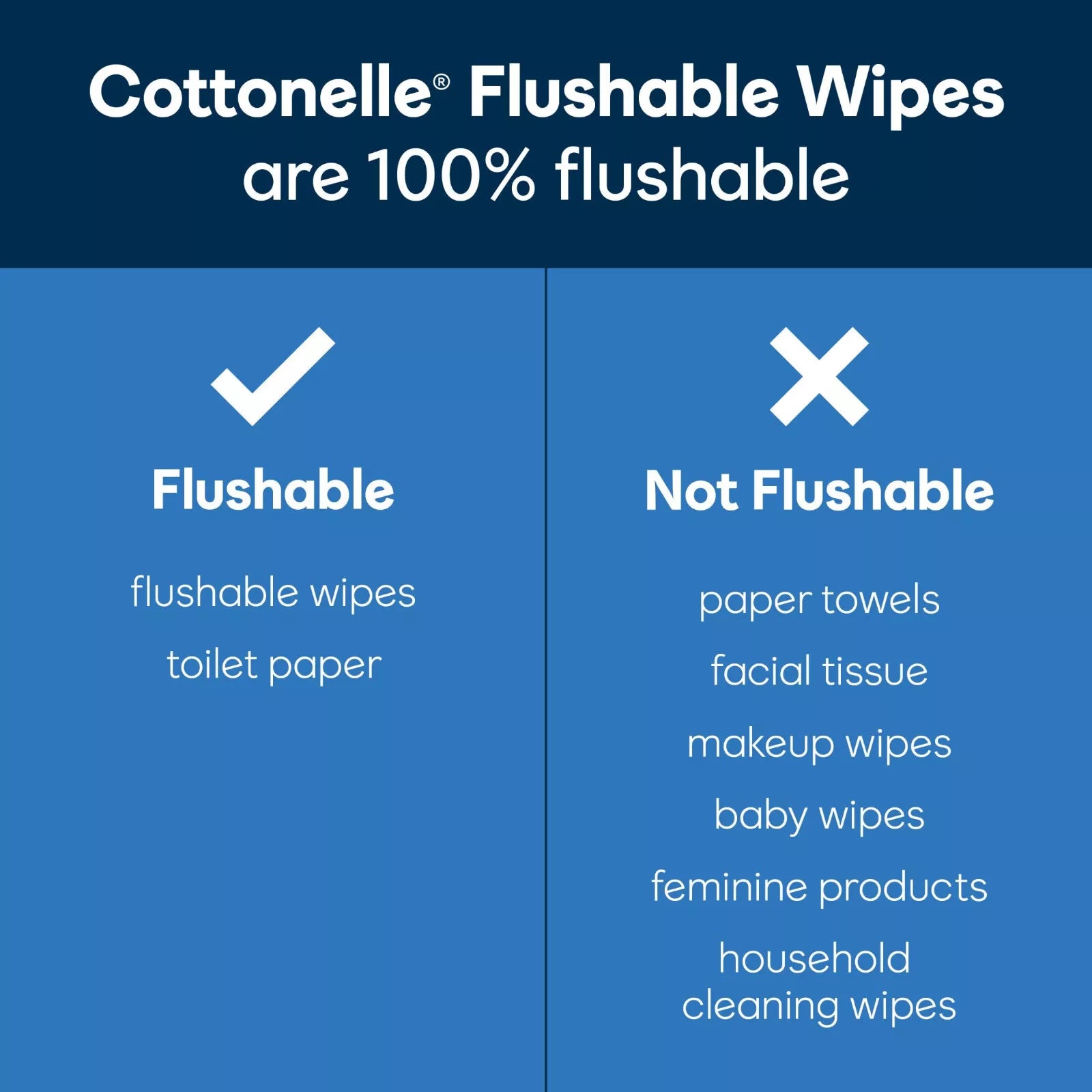 - 100% Flushable: Every wet wipe is septic-safe and breaks down like toilet paper* (*begins to break up as fast as Cottonelle Ultra Clean and has same break up after 30 minutes)